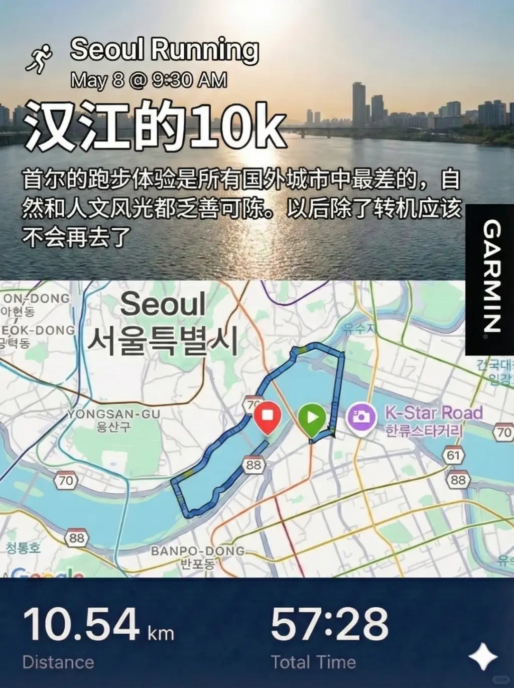 2️⃣ 结束了休假,从🇰🇷转机回美国。在首尔沿着汉江跑了两次,两次都很失望。汉江边的跑步步道对泡者非常友好,然而首尔这座城市论风光论人文都乏善可陈,不推荐。