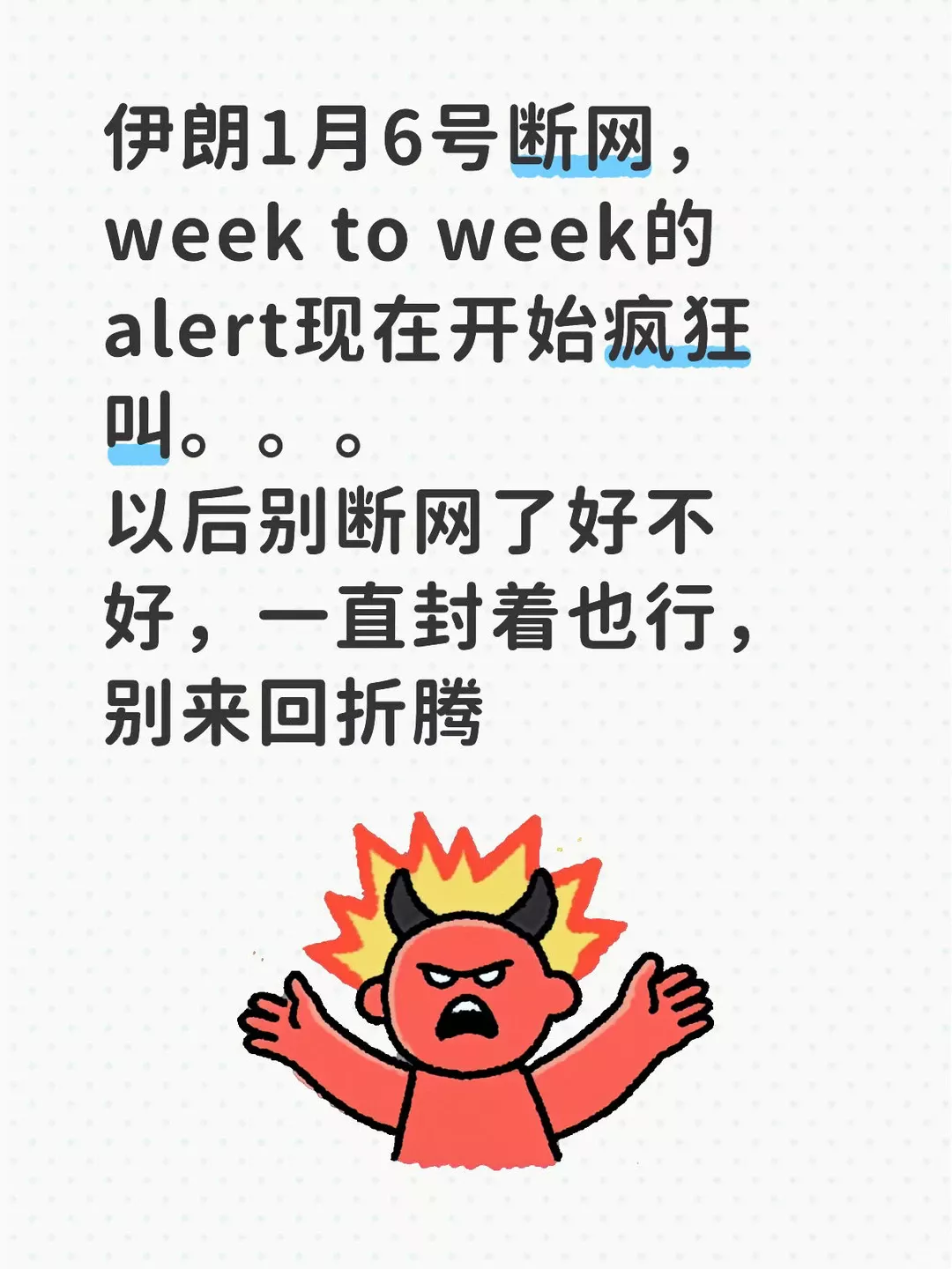 伊朗1月6号断网,week to week的alert现在开始疯狂叫。。。