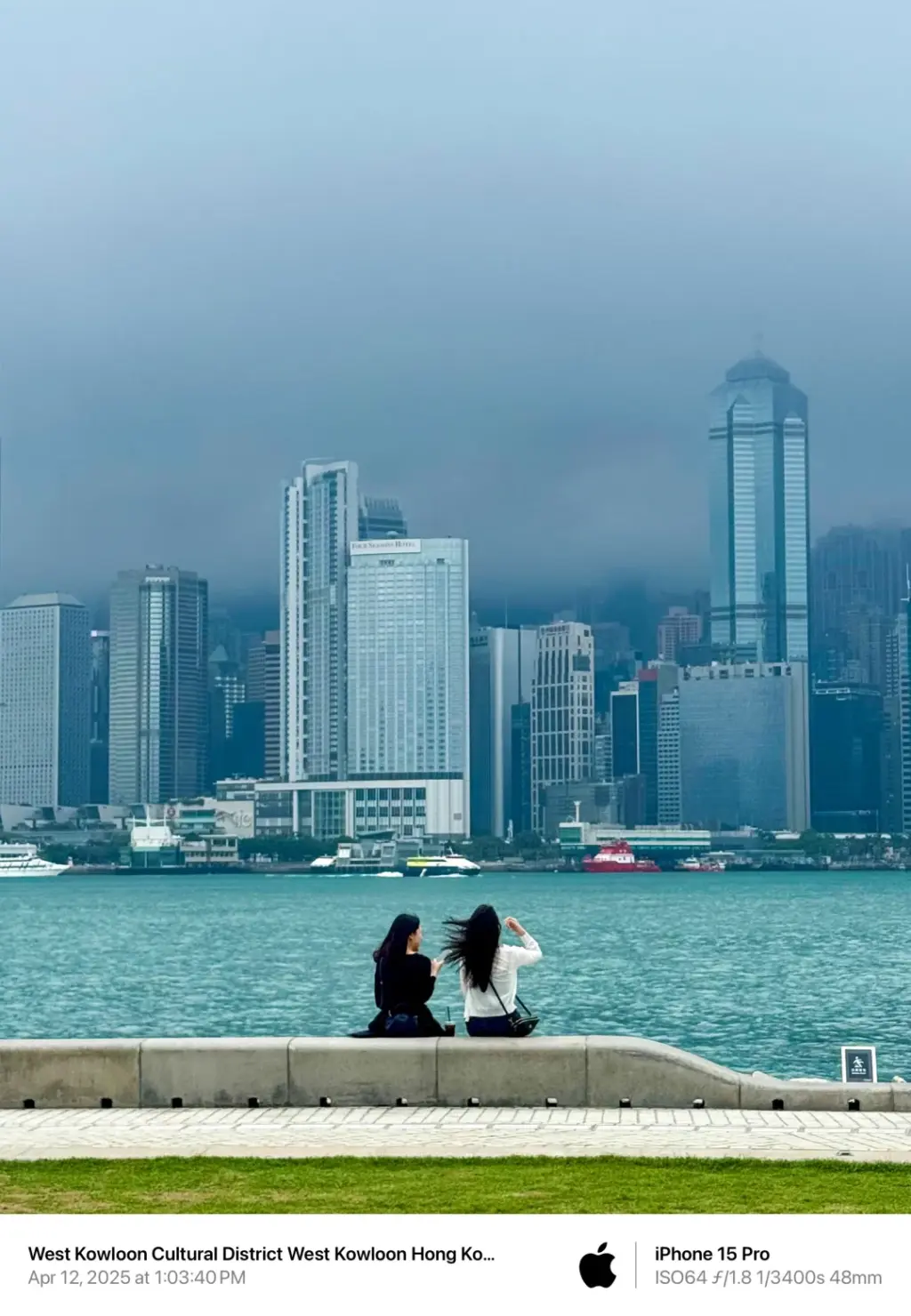 1️⃣ 从西九龙文化区眺望维多利亚湾。非常喜欢这位白衣服小姐姐的气质,万能的xhs,如果你在25年4月12日也穿着白衬衫在西九龙看风景,请在此留言[偷笑R]